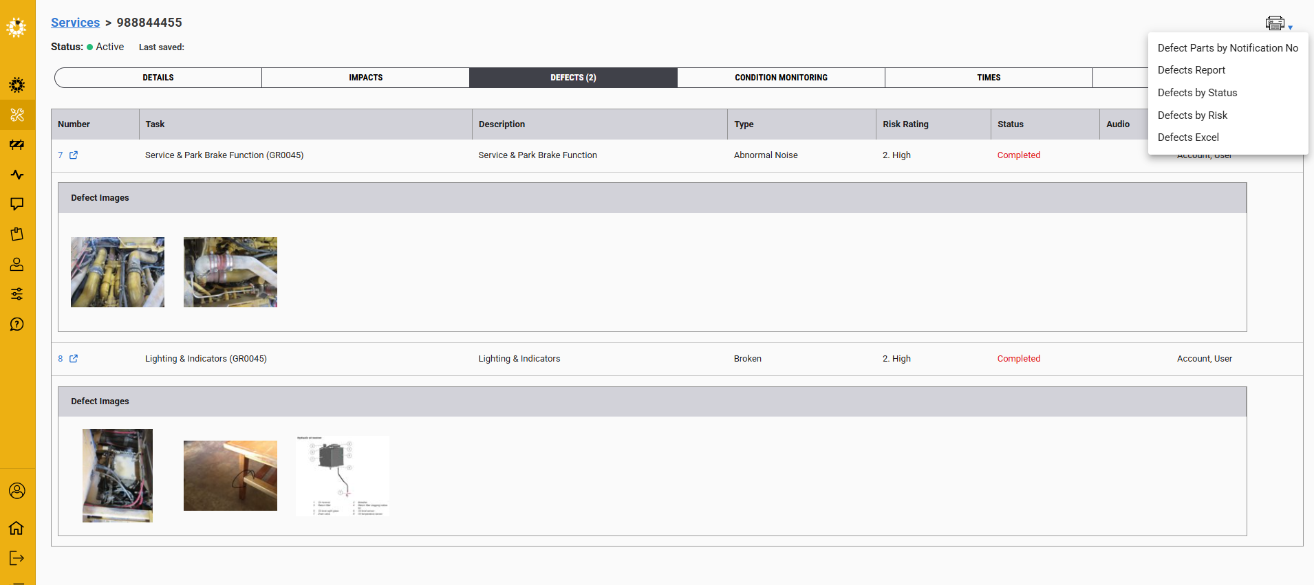 You can also generate a report from this screen that will only include the defects identified during this service.