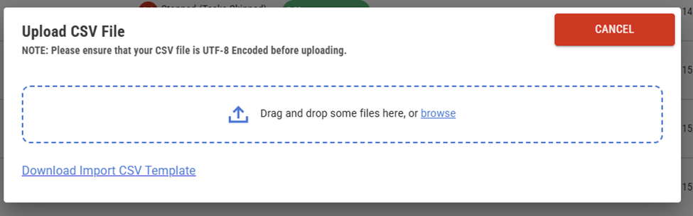 Drag and drop or upload through Browse. (make sure the upload sheet is saved as UTF-8 as in snapshot)